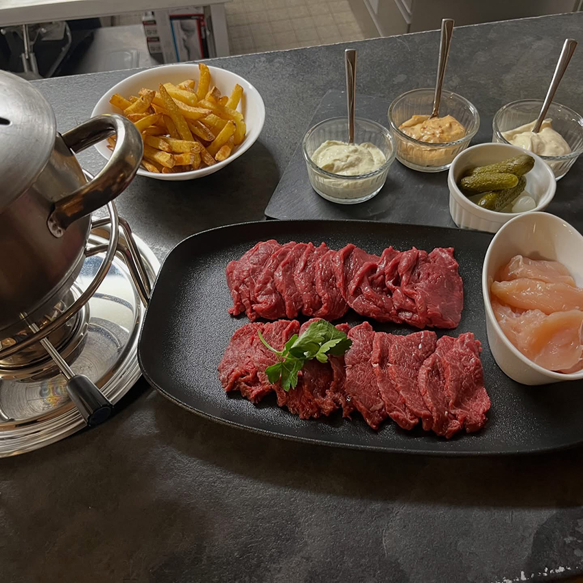 Notre magnifique terrasse vous invite à vous détendre en plein air, que ce soit pour un déjeuner ensoleillé, un dîner à la lueur des lanternes ou simplement pour partager un verre entre amis. Avec une vue imprenable sur les montagnes environnantes, c’est l’endroit idéal pour profiter des beaux jours tout en savourant des plats faits maison. Notre carte met à l’honneur des plats classiques, mais notre spécialité reste sans conteste nos succulentes viandes servies sur ardoise. Cuites selon vos préférences, directement à table, elles vous offrent une expérience gustative unique où la tendreté de la viande rencontre le plaisir de la cuisson à la perfection.